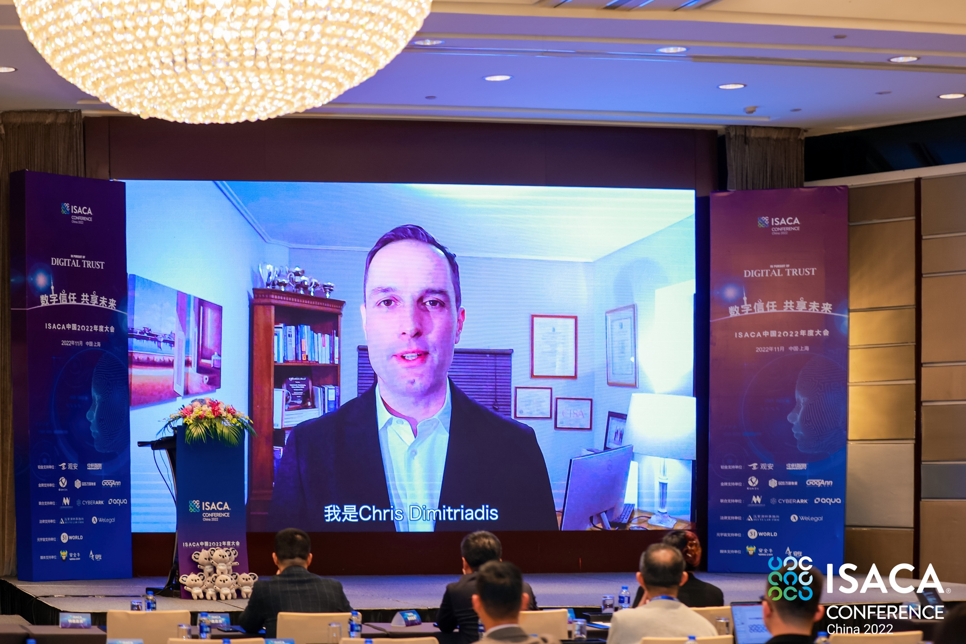 ISACA首席战略官Chris Dimitriadis先生特意从希腊隔空为大家带来线上演讲。中国建设银行首席信息官金磐石先生、ISACA中国区首席代表陈红梅女士、北京大学计算机学院陈钟教授、安永大中华区网络安全与隐私保护咨询服务主管合伙人高轶峰先生、中国太平洋保险集团审计中心内控首席审计师胡霜竹女士、阿里云全球技术服务部资深总监万谊平先生、上海观安联合创始人胡绍勇先生分别作了主题分享,为与会者带来一场精彩的知识盛宴。